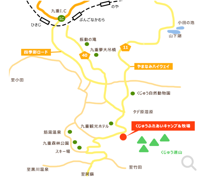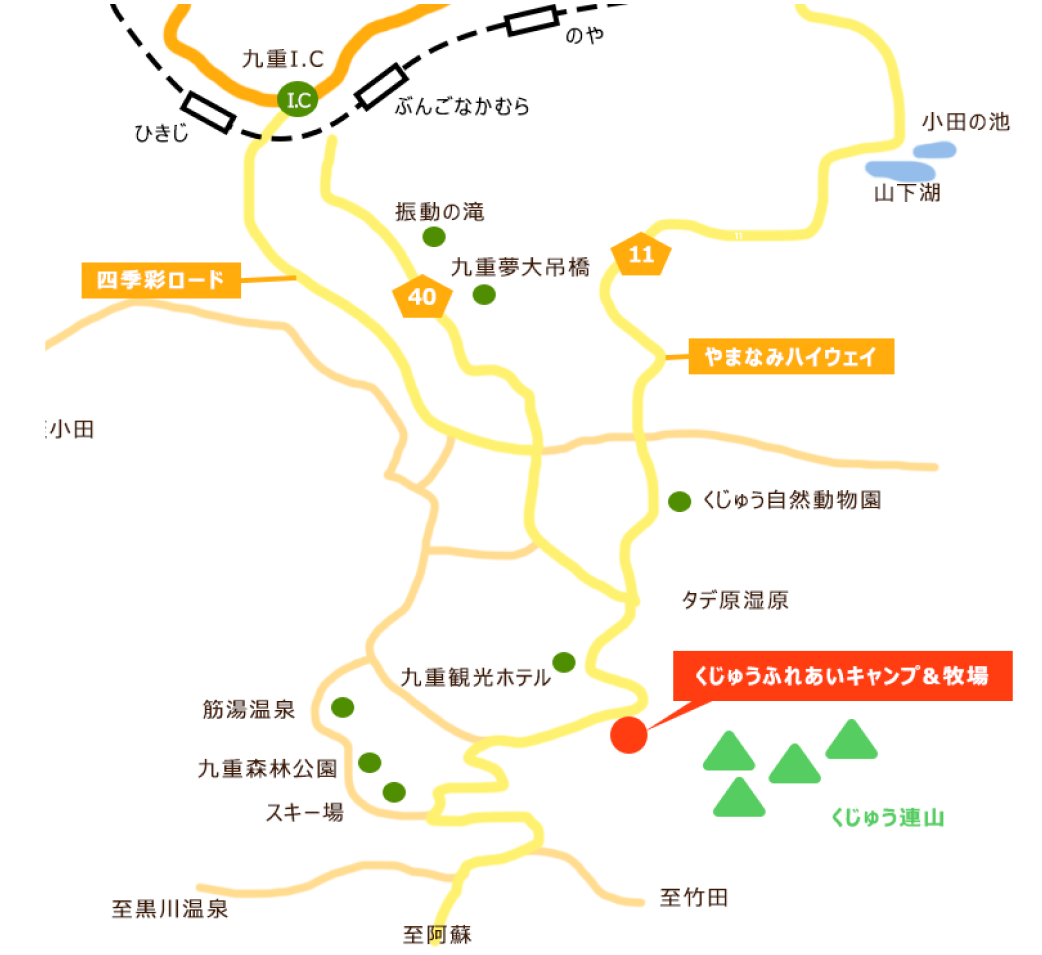 大分自動車道、九重ICより県道11号線にて約30分